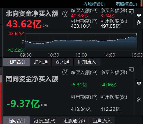 收評(píng):北向資金尾盤(pán)出現(xiàn)大幅流入,全天凈買(mǎi)入43.62億元