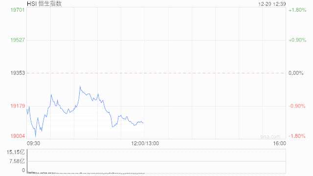 摘要: 12月20日消息,美股周一收跌,主要股指錄得連續(xù)第四個交易日下滑。今日港股恒指低開1.01%,截至午盤,港股恒指跌1.36%,報19089.96點;國企指數跌1.96%,紅籌指數跌1.93%。