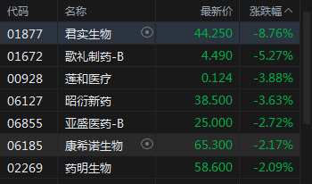快訊:生物技術(shù)股走低 君實生物跌近9%歌禮制藥跌超5%