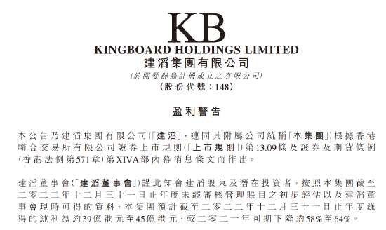 摘要: 建滔集團1月9日在港交所發(fā)布公告稱,預計截至2022年12月31日止年度取得的純利為約39億港元至45億港元,較2021年同期下降約58%至64%。