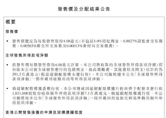 摘要: 樂華娛樂定價(jià)4.08港元,不計(jì)超額配股權(quán),募資3.91億港元,公開發(fā)售超購27.68倍,國配超購0.29倍,公司一手中簽率50%。公司引入四名基石投資者,其中,儒意控股投資790萬美元,
