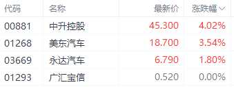摘要: 1月19日訊今日在港股上市的汽車經銷商股繼前期大幅調整過后,今日呈現小幅反彈,其中美東汽車(01268.HK)、中升控股(00881.HK)、永達汽車(03669.HK)分別上漲4.02