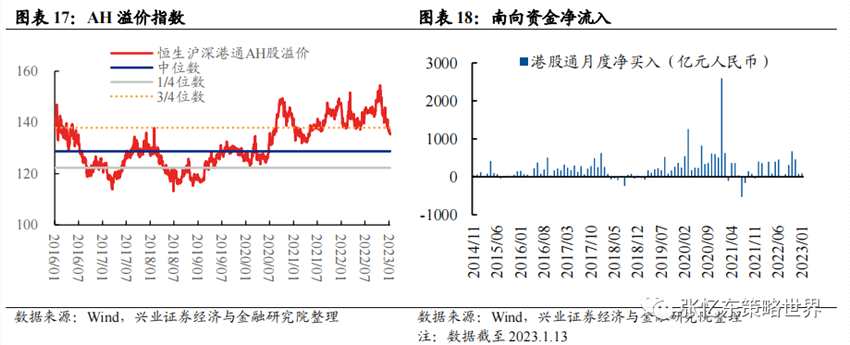 雖然AH溢價有所回落,但仍處于歷史高位水平,港股仍具有較高性價比,后續(xù)港股特色優(yōu)質(zhì)資產(chǎn)有望繼續(xù)吸引南下資金流入。這次港股罕見的大熊市中,AH溢價指數(shù)高點遠(yuǎn)高于以往的區(qū)間,當(dāng)前雖然從極高位置回落,但仍處于2014年以來3/4分位數(shù)水平附近。
