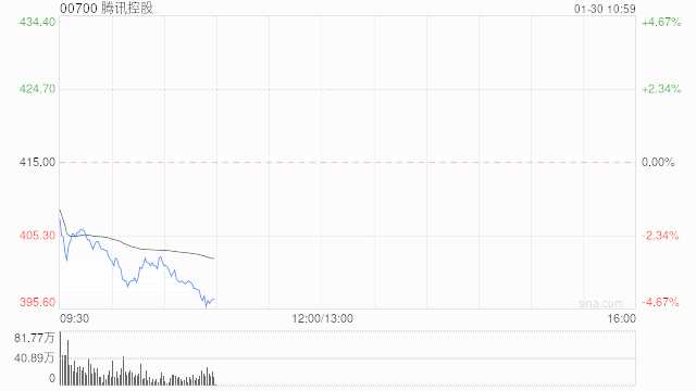 騰訊跌3.76%股價(jià)失守400港元大關(guān) 國(guó)盛高呼500港元