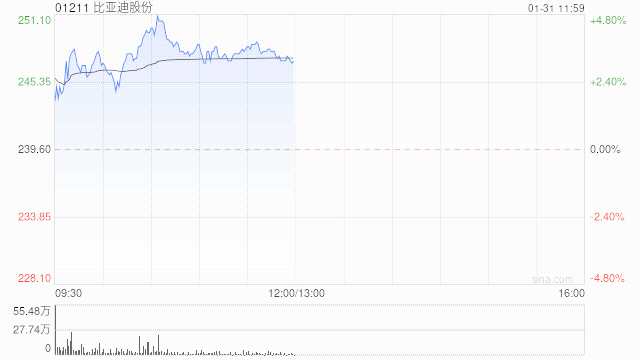美銀證券:重申比亞迪股份買入評級 目標(biāo)價400港元