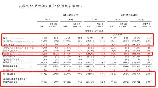 財(cái)報(bào)顯示,2019年至2021年及2022年前9個(gè)月,公司虧損持續(xù)擴(kuò)大,分別為虧損9200萬(wàn)元、3.22億元及4.88億元,2022年前9個(gè)月凈虧損達(dá)到3.72億人民幣,同比升4.7%。近四年虧損額高達(dá)12.74億元。