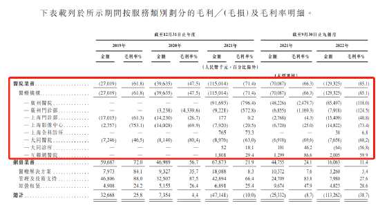 根據(jù)公司毛利率明細(xì),除了公司一家互聯(lián)網(wǎng)醫(yī)院和一家上海全科診所,公司目前運(yùn)營(yíng)的6家診所和醫(yī)院全面錄得虧損,累計(jì)虧損上億元。