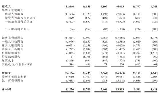這兩塊業(yè)務(wù)陸金所的銷售模式有所不同。其中普惠品牌下的零售信貸賦能業(yè)務(wù),主要通過線下渠道獲取借款人;消費金融則通過應(yīng)用程序及流量平臺在線上獲客,并通過直銷網(wǎng)絡(luò)線下獲客。截至2022年9月末,有46.5%的消費金融借款人源自線下,53.5%源自線上。