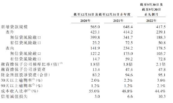 30天以上逾期率2020年還是2.0%,20229月末到了3.6%;90天以上逾期率從2020年的1.2%,上升至2022年9月末的2.1%。