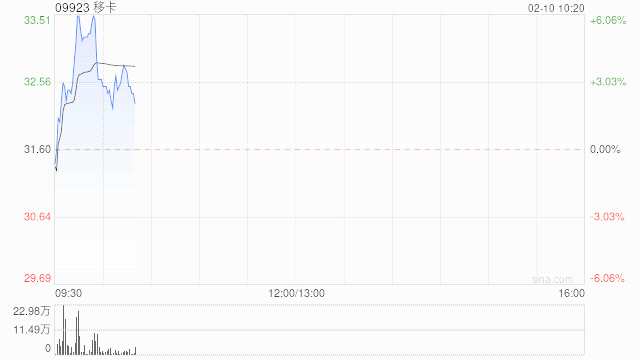 移卡(09923)早盤漲超6%,現(xiàn)漲3.32%,報32.65港元,成交額6605.60萬港元。