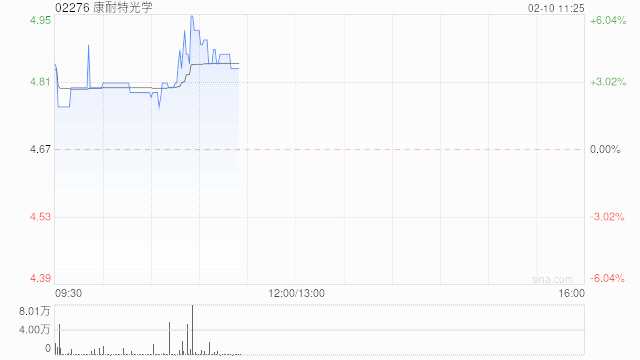 康耐特光學(xué)發(fā)布盈喜后曾漲超5%,現(xiàn)漲3.64%,報4.84港元,成交額236.00萬萬港元。
