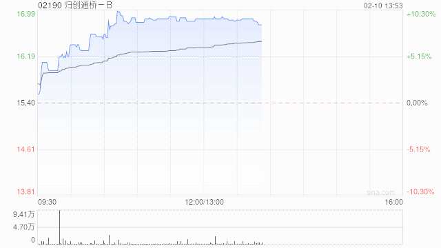 歸創(chuàng)通橋-B(02190)逆市活躍,創(chuàng)約1年來新高?,F(xiàn)漲9.09%,報16.80港元,成交額743.99萬港元。