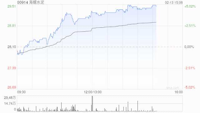 水泥股復(fù)后普漲 海螺水泥漲近5%華新水泥漲超2%