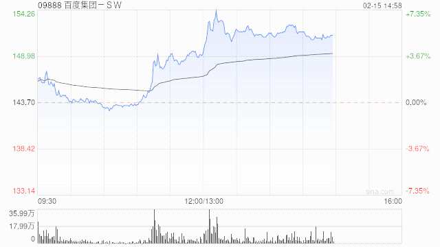 百度集團-SW午后漲近6% 中金指有望加速公司技術(shù)迭代
