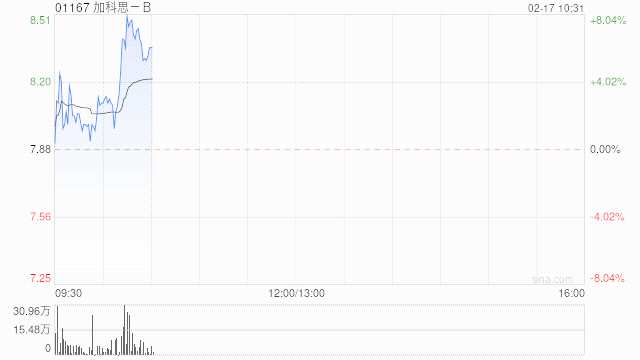 加科思-B(01167)早盤再度活躍,再漲3.17%,報8.13港元,成交額1485.71萬港元。