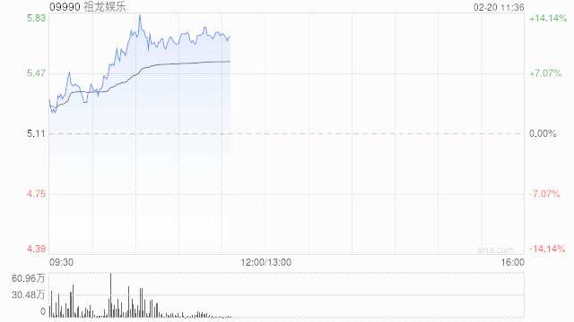 祖龍娛樂(09990)早盤走高,上漲10.76%,報價5.66港元,成交額5990.61萬港元。