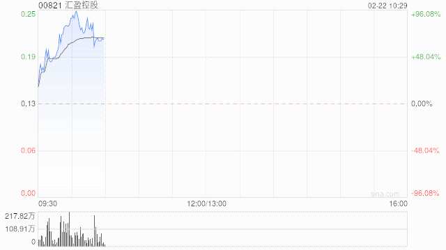 匯盈控股(00821)盤初高開后沖高,升約68%,高見0.21港元,截至發(fā)稿,現(xiàn)漲48%,報0.185港元,成交額203.22萬港元。