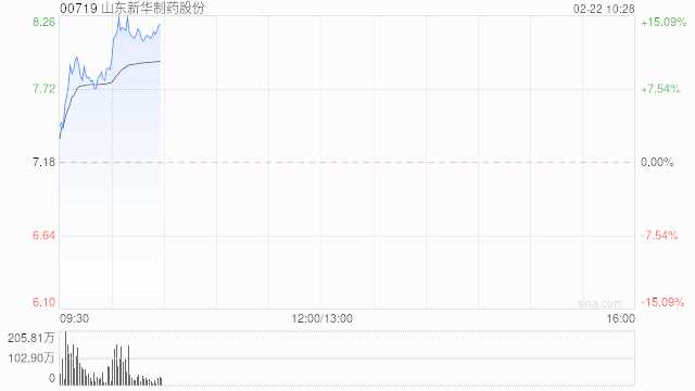 山東新華制藥(000756)股份(00719)早盤快速拉升,現漲12.67%,報8.09港元,成交額2.72億港元。