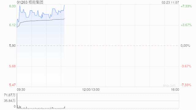 柏能集團(tuán)(01263)早盤漲超7%,截至發(fā)稿,上漲5.59%,報(bào)6.23港元,成交額1139.75萬港元。