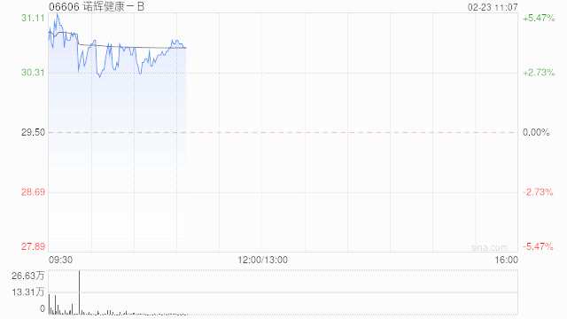 諾輝健康-B(06606)上升4.06%,現(xiàn)報30.70港元,成交額3948.34萬港元。