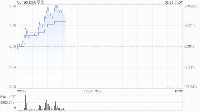國美零售(00493)早盤走強,曾升約10%?,F(xiàn)漲7.64%,報0.155港元,成交額1.356億港元。