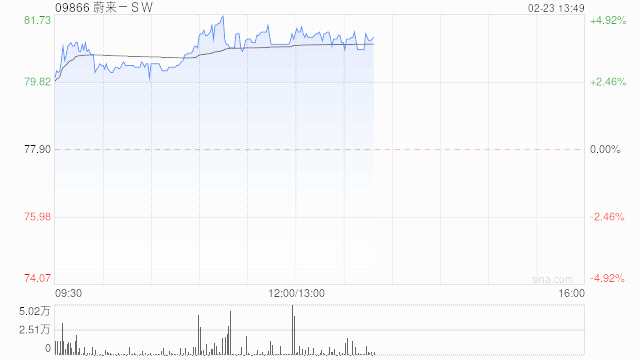 蔚來(lái)-SW(09866)上漲4.17%,現(xiàn)報(bào)81.15港元,成交額6453.326萬(wàn)港元。