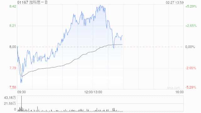 加科思-B(01167)午后上漲3.38%,現(xiàn)報(bào)8.27港元,成交額3679.345萬(wàn)港元。