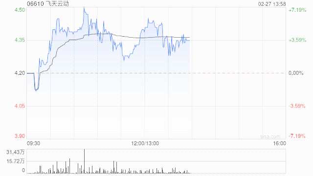 飛天云動(dòng)(06610)午盤上漲2.86%,報(bào)4.32港元,成交額2353.863萬(wàn)港元。