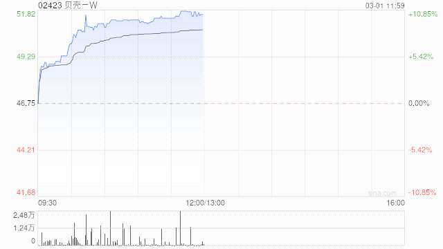 貝殼-W漲超10% 大和首予買入評級給予目標(biāo)價63港元
