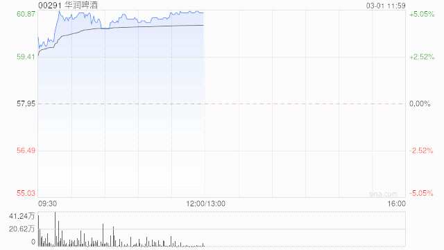 大摩:重申華潤啤酒增持評(píng)級(jí) 目標(biāo)價(jià)升至67港元