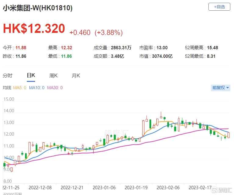 對(duì)于2023年,預(yù)計(jì)小米核心凈利潤將同比增長36%至約150億元,集團(tuán)凈利潤同比持平至約84億元;2023年智能手機(jī)GPM同比增長1.5個(gè)百分點(diǎn);互聯(lián)網(wǎng)服務(wù)收入在2023年同比增速提升至7%,與2022年持平。該行將目標(biāo)價(jià)從13.2港元上調(diào)至13.3港元,維持“中性”評(píng)級(jí)。