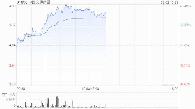 基建股午盤走高 中國交通建設(shè)及中國中鐵均漲超4%