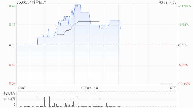 興科蓉醫(yī)藥(06833)午盤上漲5.95%,報0.445港元,成交額494.53萬港元。