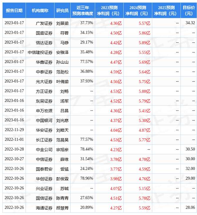 最新盈利預(yù)測明細(xì)如下: