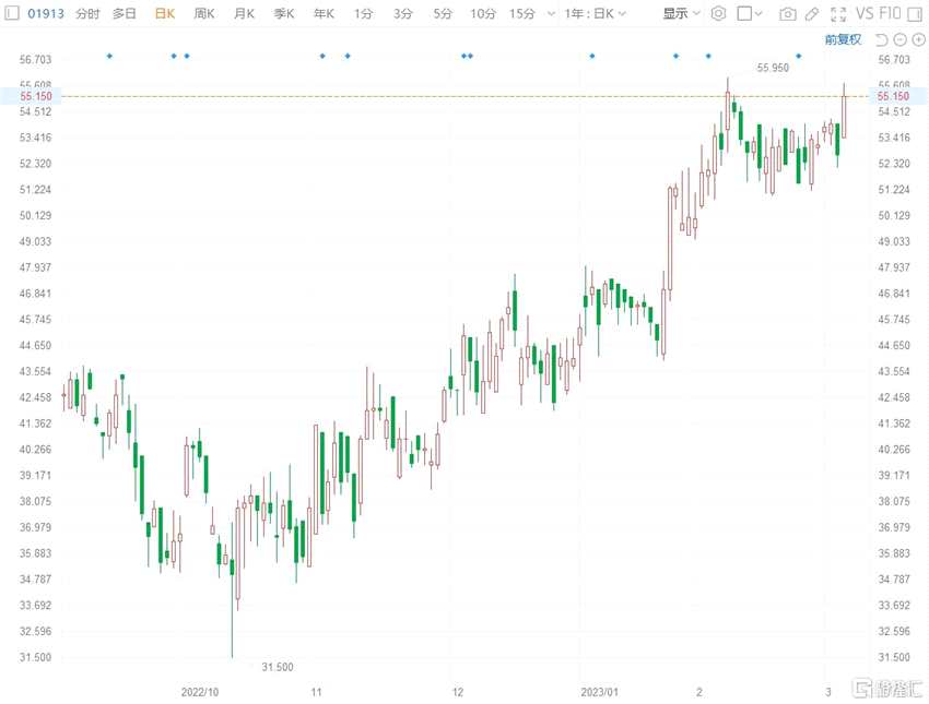 摘要: 互聯(lián)網(wǎng)3月6日丨普拉達(dá)(1913.HK)漲5.69%,報(bào)55.7港元,總市值1425億港元。公司即將于3月9日公布2022年業(yè)績。此前,其同行法國奢侈品品牌愛馬仕公布,
