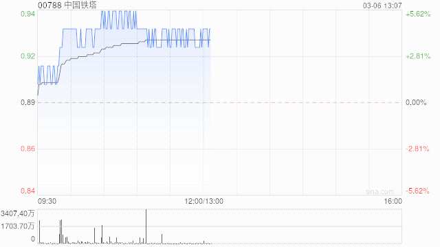瑞信:維持中國(guó)鐵塔跑贏大市評(píng)級(jí) 目標(biāo)價(jià)升至1.05港元