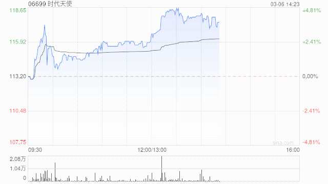 時(shí)代天使(06699)溫和反彈,午盤上漲4.06%,報(bào)117.80港元,成交額3834.81萬港元。