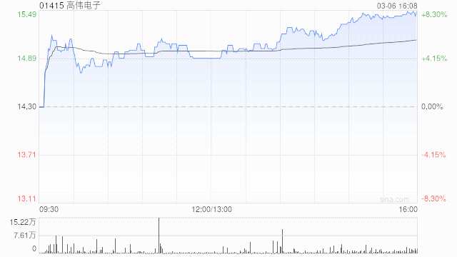 高偉電子(01415)尾盤上漲7.83%,報(bào)15.42港元,成交額4126.85萬港元。