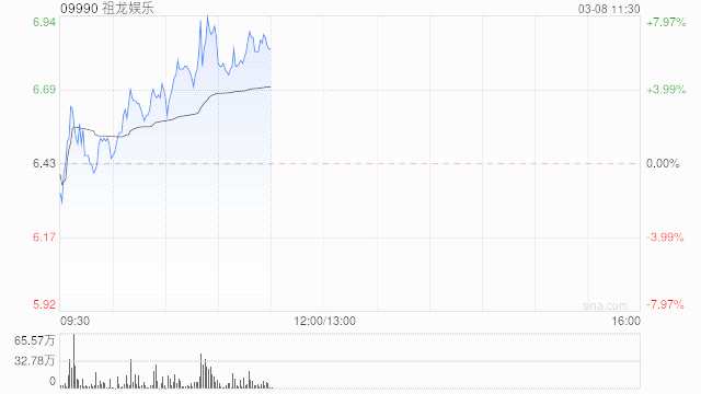 祖龍娛樂(lè)(09990)上漲5.13%,現(xiàn)報(bào)6.76港元,成交額6462.878萬(wàn)港元。
