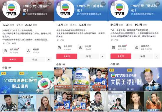 實(shí)際上,2022年4月,TVB就已入駐抖音直播帶貨,并且開(kāi)通了3個(gè)面向不同商品品類(lèi)的賬號(hào),分別為T(mén)VB識(shí)貨(港式甄選)、TVB識(shí)貨(美味甄選)和TVB識(shí)貨(香港嚴(yán)選),累計(jì)粉絲數(shù)已突破93.8萬(wàn)。