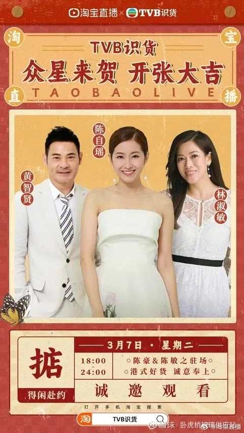 TVB淘寶直播賬號(hào)“TBV識(shí)貨”已上線。就在昨日,以TVB當(dāng)紅藝人陳豪、陳敏之主導(dǎo)的淘寶電商直播,于3月7日開(kāi)播。據(jù)透露,此后還有望邀請(qǐng)更多熟悉的老面孔入駐,操著獨(dú)特的“港劇腔”帶貨。