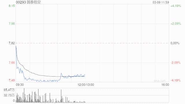 美銀證券:維持國泰航空跑輸大市評級 目標(biāo)價升至6.6港元