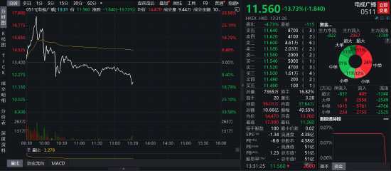 電視廣播午后暴跌近15%,公司早盤一度漲超30%