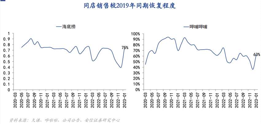 此外,從海底撈、呷哺呷哺、九毛九等頭部餐飲股的同店銷售情況來看,還尚未整體恢復(fù)到20109年疫情前的水平。