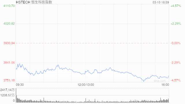 恒指科技指數(shù)尾盤跌幅擴(kuò)大至4%,京東集團(tuán)大跌11%,比亞迪(002594)電子、百度等跌近6%,快手、萬國數(shù)據(jù)、京東健康等跌超5%。
