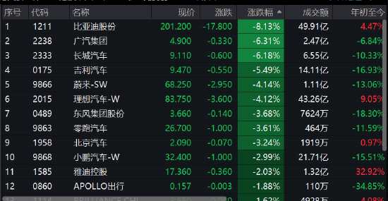 新能源汽車股集體上演暴跌行情,比亞迪跌超8%,廣汽集團(tuán)(601238)、長城汽車跌超6%,吉利跌5.5%,蔚來、理想跌超4%。汽車股大跌背后,近日,汽車行業(yè)掀起一波“降價潮”。據(jù)統(tǒng)計,截至目前,已有至少30個汽車品牌參與降價,最高優(yōu)惠超過10萬元。