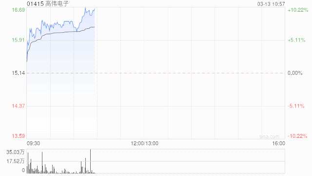 高偉電子(01415)明顯活躍,盤初上漲8.06%,現(xiàn)報(bào)16.36港元,成交額5035.41萬港元。