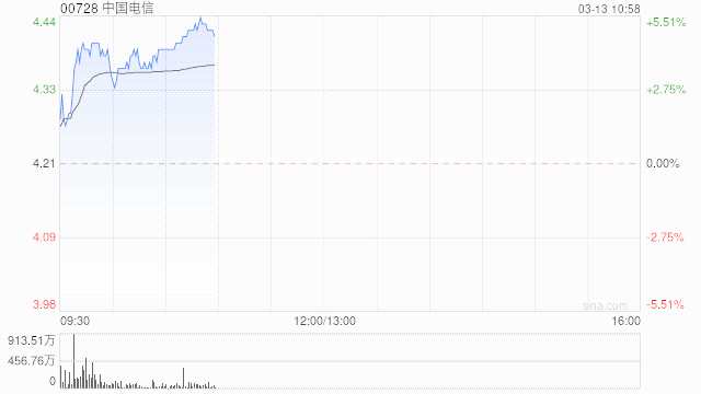 電信股早盤走高 中國電信上漲4%中國移動上漲3%