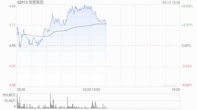 微盟集團(tuán)(02013)午盤上漲4.17%,報4.75港元,成交額1.62億港元。