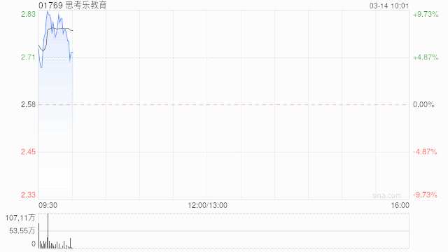 思考樂教育(01769)發(fā)盈喜后高開,上漲7.75%,報2.78港元,成交額1087.58萬港元。